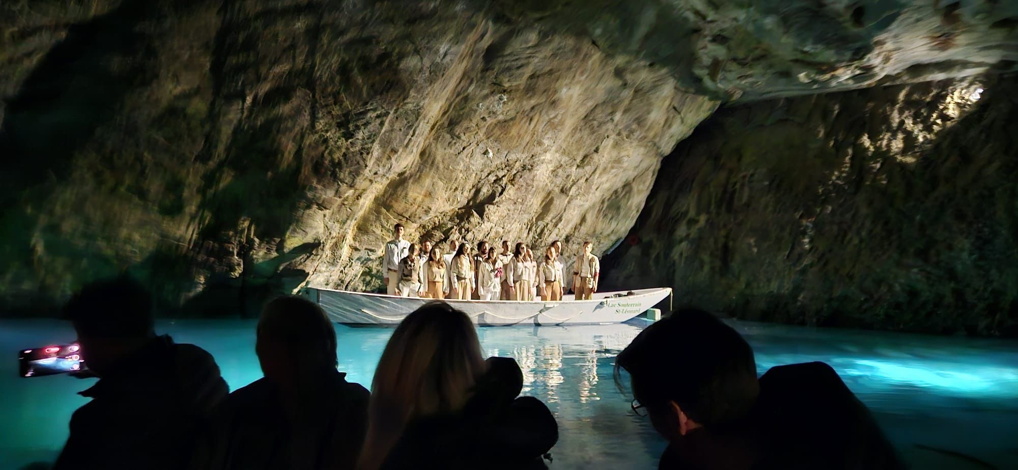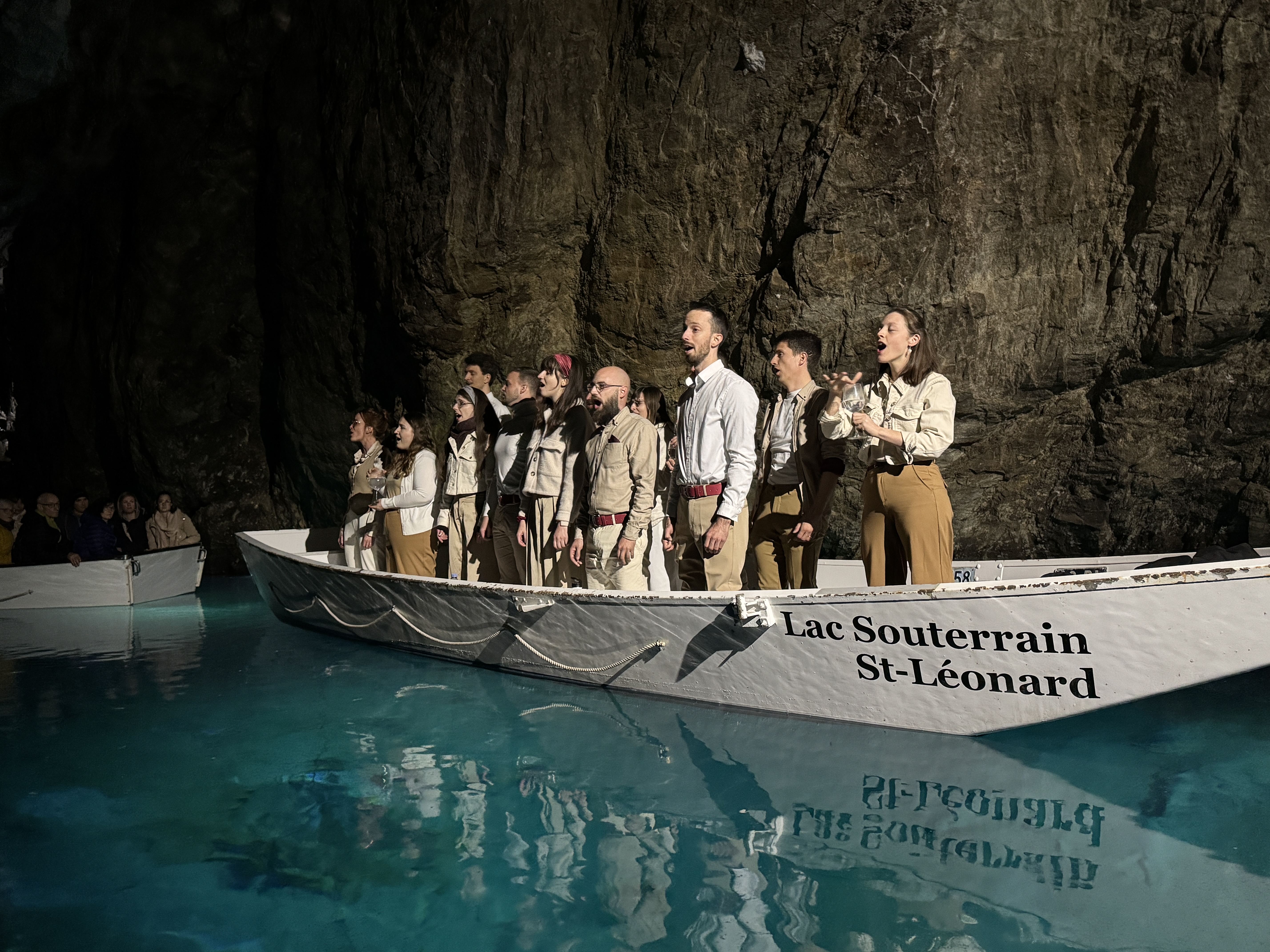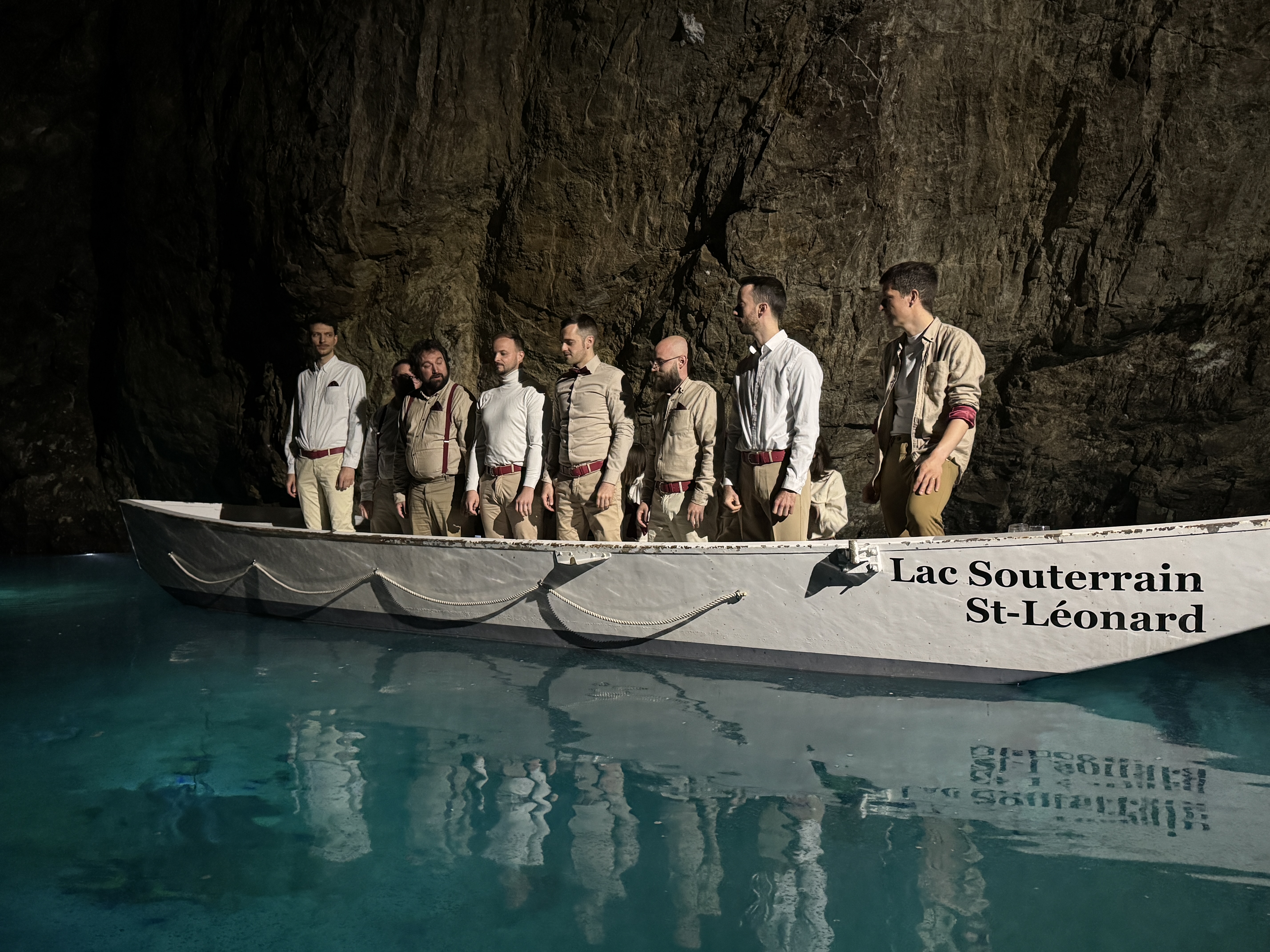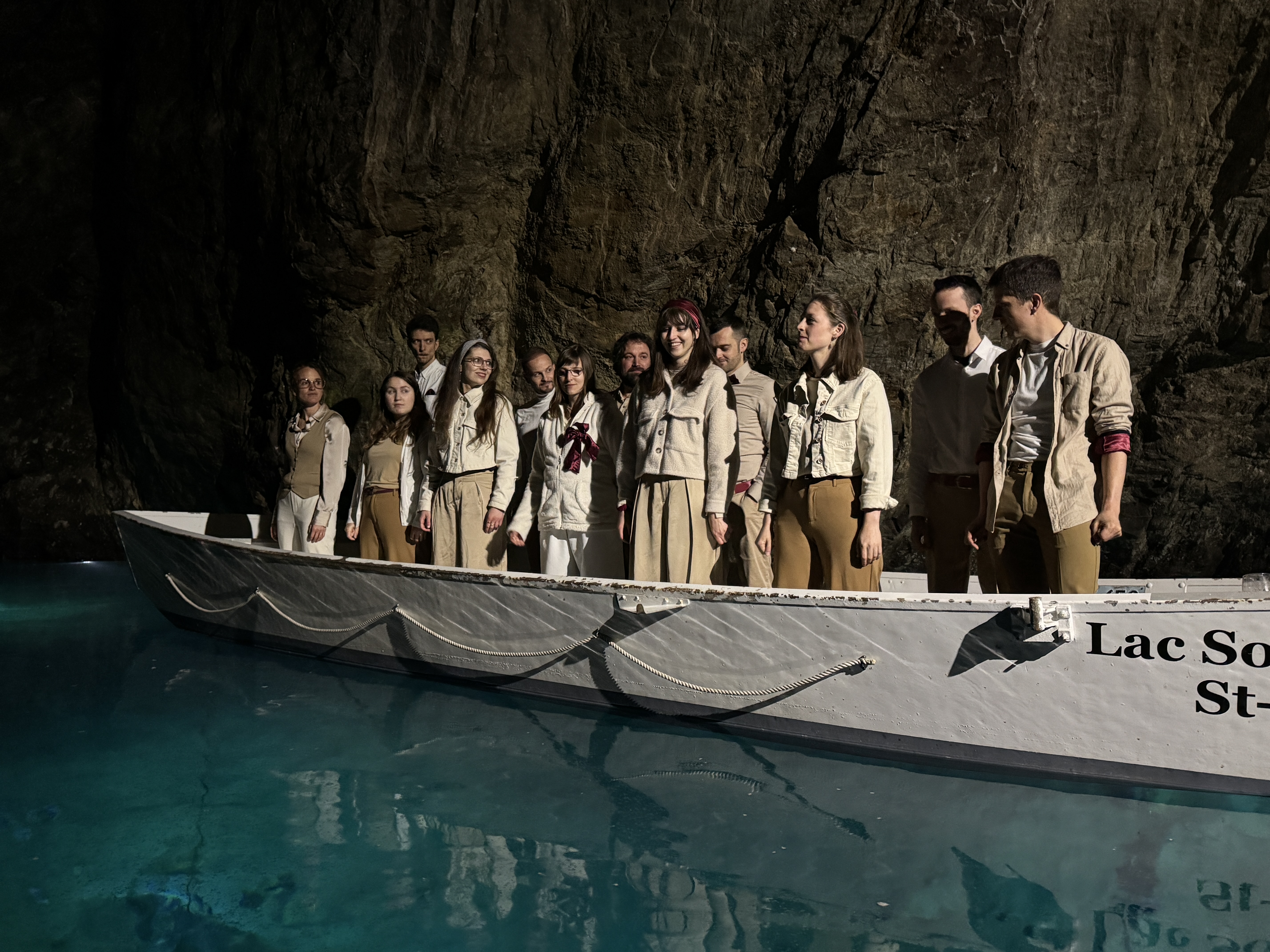 Cake O'Phonie n'aurait pas pu espérer un cadre plus extraordinaire pour revenir chanter devant son public valaisan. Au fond du splendide lac souterrain de St-Léonard, nous avons eu le privilège de nous produire sur une barque en face d'un public voguant sur l'eau au rythme de nos voix. Une expérience inoubliable.